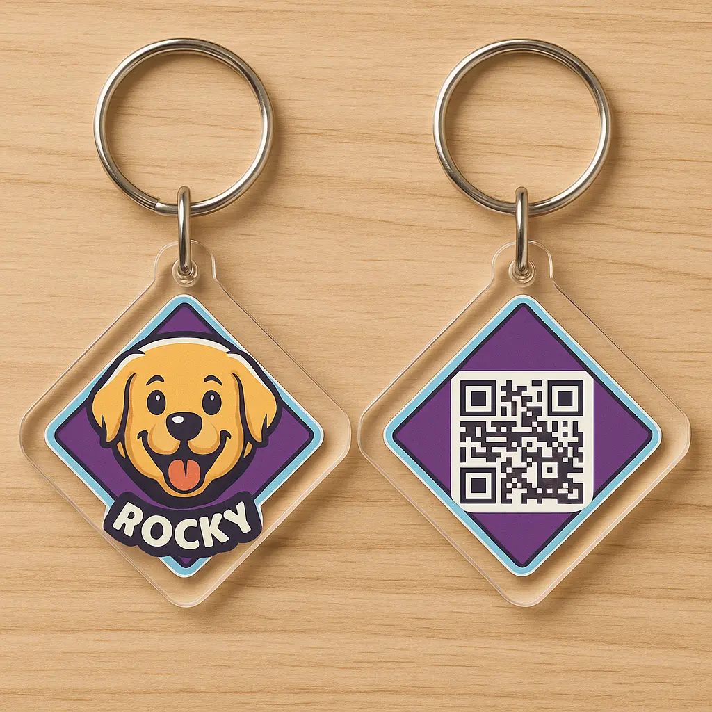 Puede incluir: número de contacto, nombre del perro, dirección o mensaje emocional.